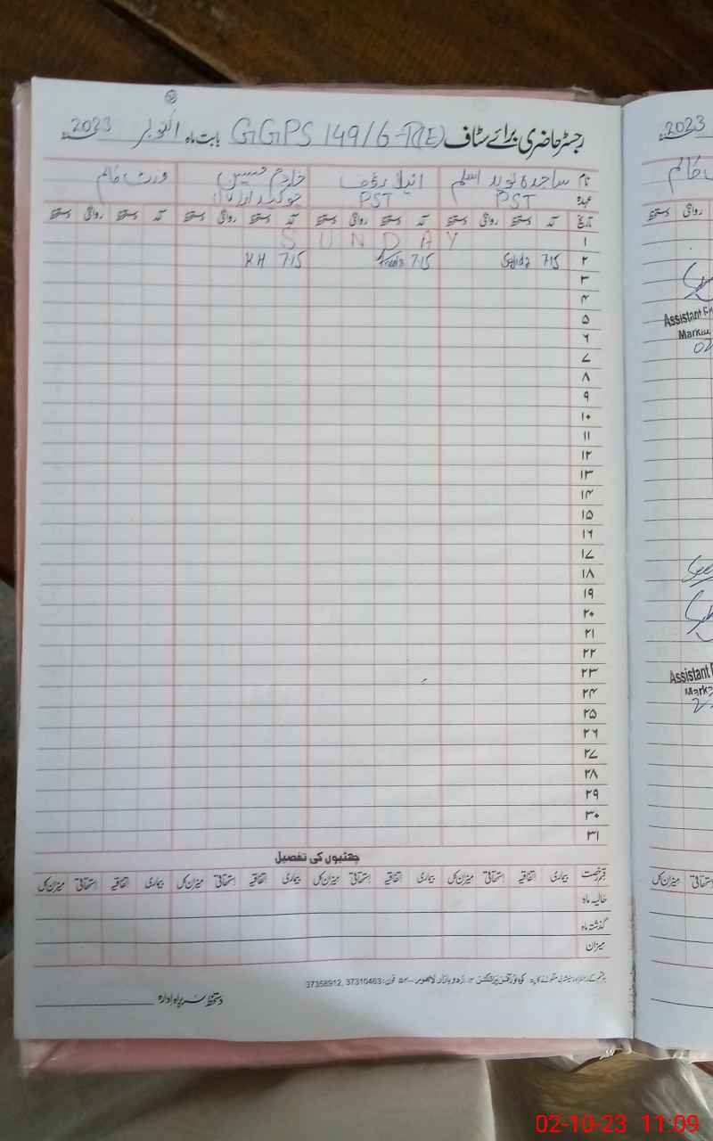 | CNIC | Full Name | Designation | R/C | Absence During Last Calender Month |