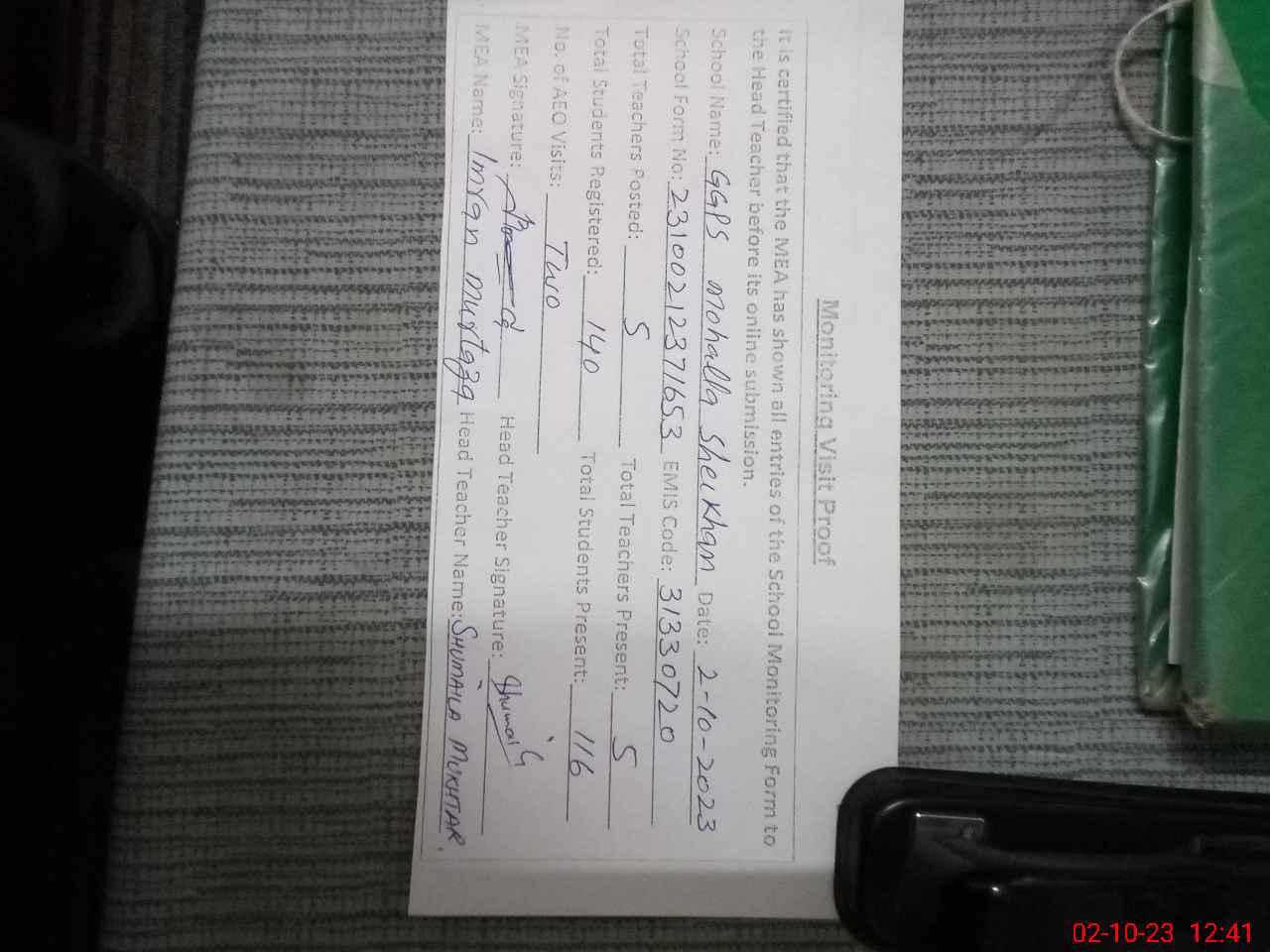 | EMIS Code: 31330720 | Name of School: GGPS MOHALLAH SHEIKHAN KOT SAMABA | |||