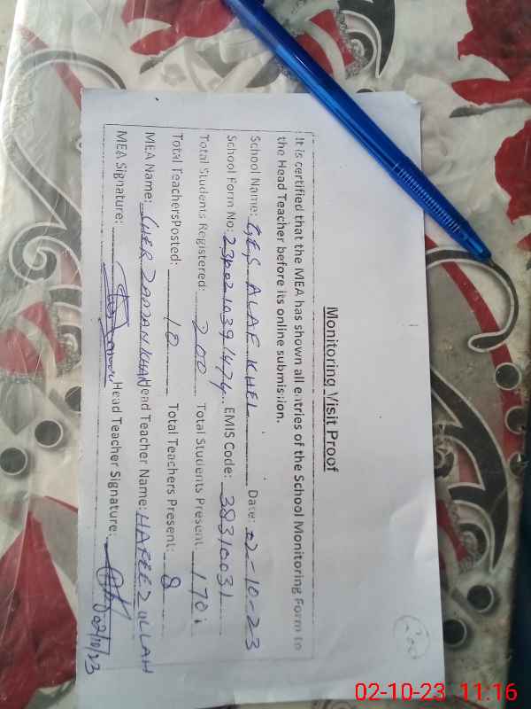 | Certified that this School was Inspected by the Undersigned MEA/DMO Today and the Information Stated Above is as Per Record. | |||||