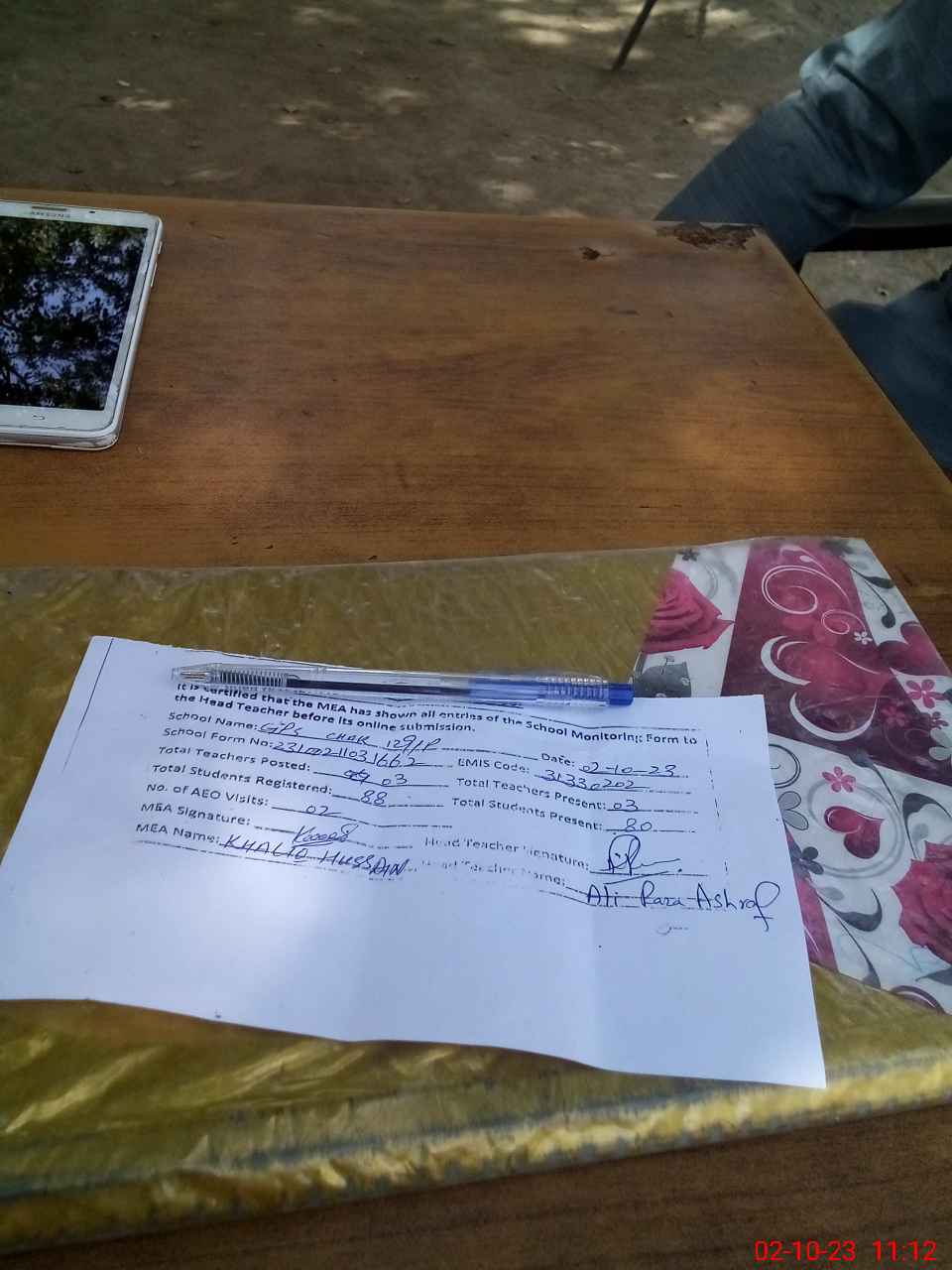| Attendance Register | Head Teacher | MEA with School | Visit Proof |