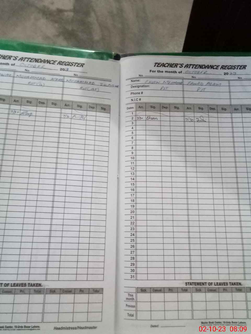 | Name: WA**** AH**** Designation: (School Headmaster's/Headmistress's) S.S.T.(SCIENCE) Phone/Cell Number: 03**** |