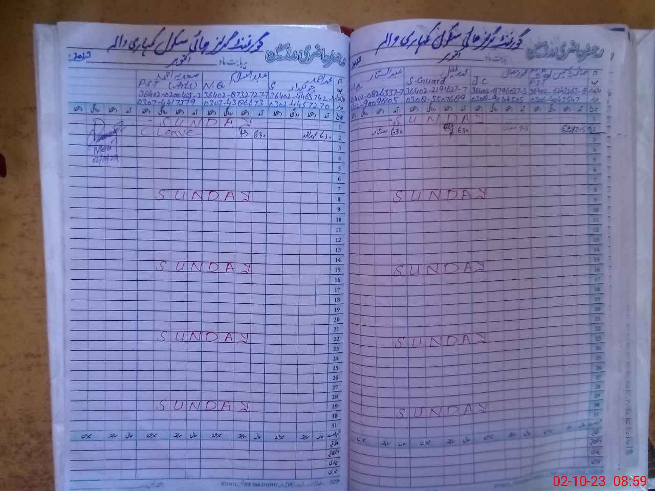 | CNIC | Full Name | Designation | R/C | Absence During Last Calender Month |