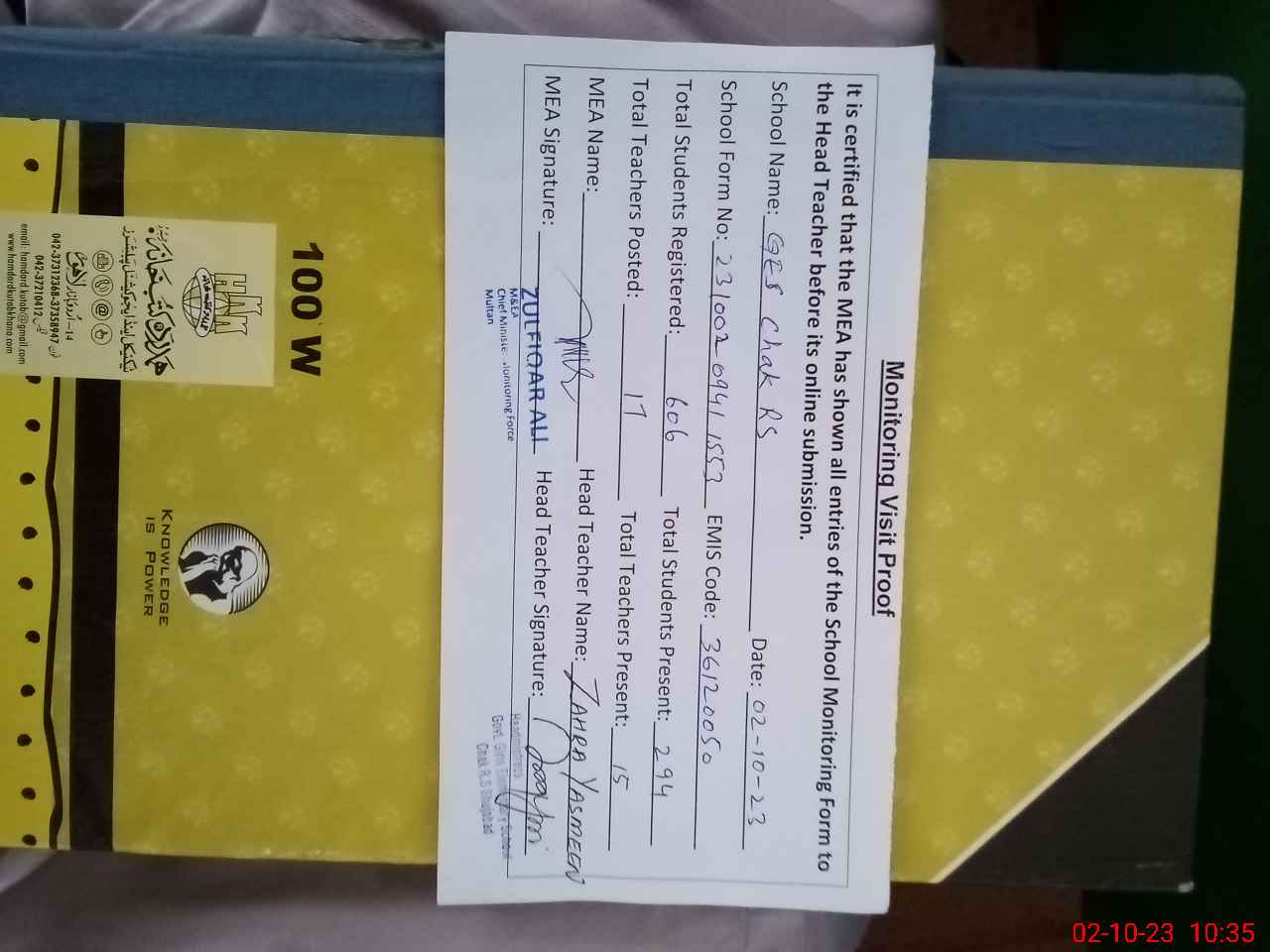 | EMIS Code: 36120050 | Name of School: GGES CHAK R S SHUJABAD DISTT. MULTAN | |||