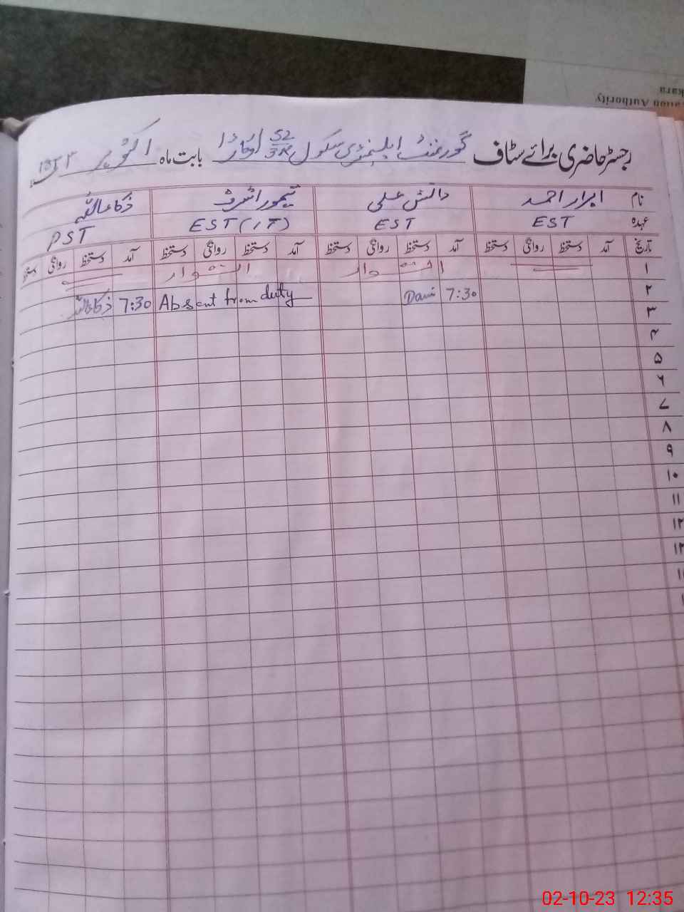 | 35**** | Ta**** As**** | 3 | 1 | 0 | 0 | 0 | 0 | 0 | 0 | 0 | 0 | 0 | Absent (Un-Authorized) |