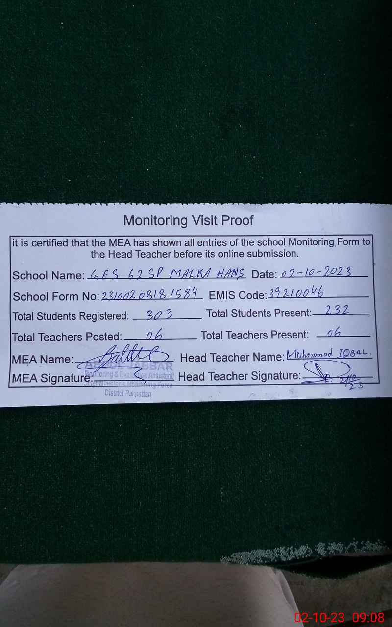 | EMIS Code: 39210046 | Name of School: GES 62/SP MALKA HANS | |||