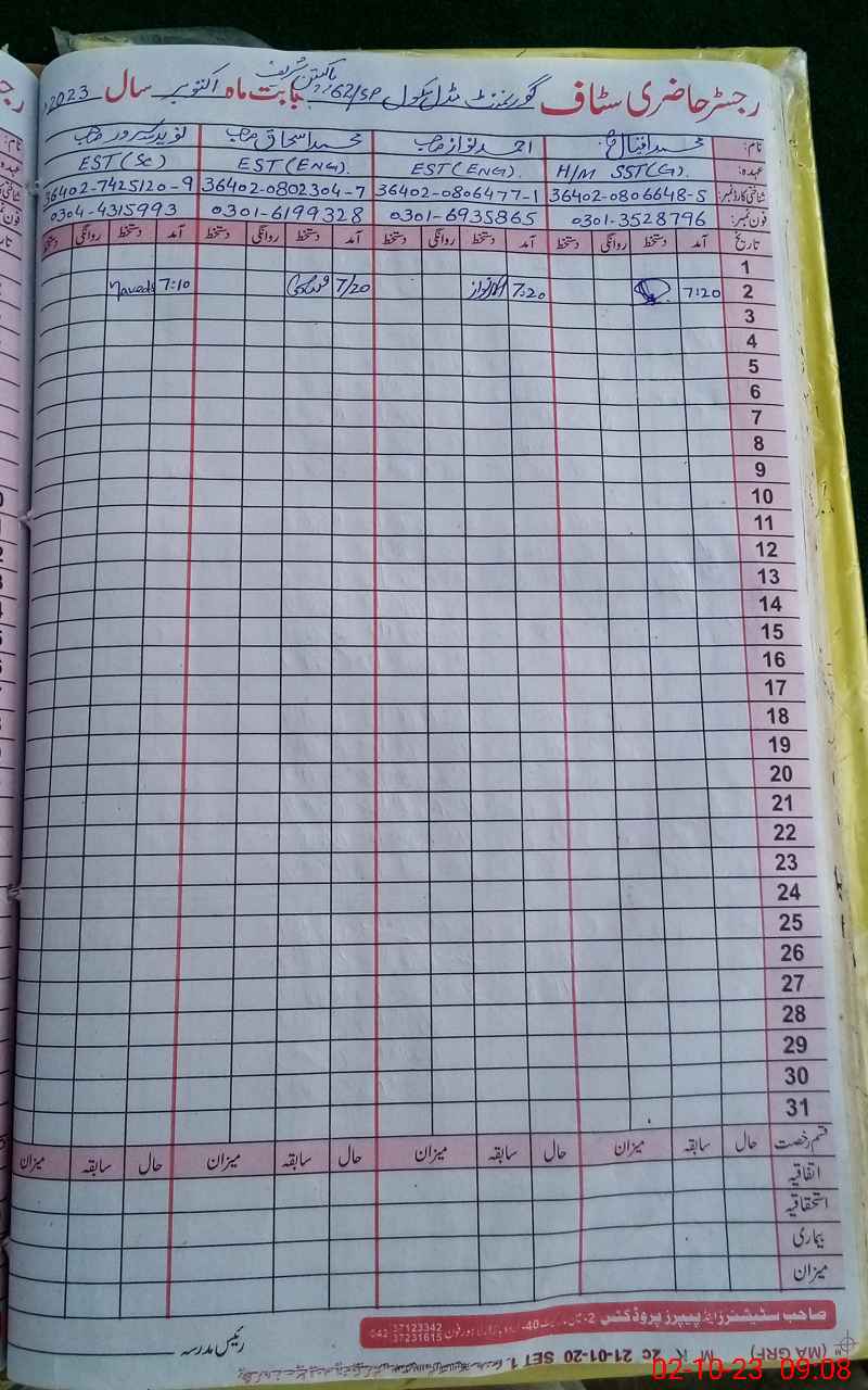 | Name: MU**** IQ**** Designation: (School Headmaster's/Headmistress's) S.S.T.(GENERAL) Phone/Cell Number: 03**** |