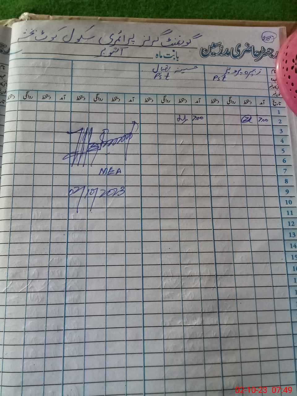 | Name: ZU**** PE**** Designation: (School Headmaster's/Headmistress's) PST Phone/Cell Number: 03**** |