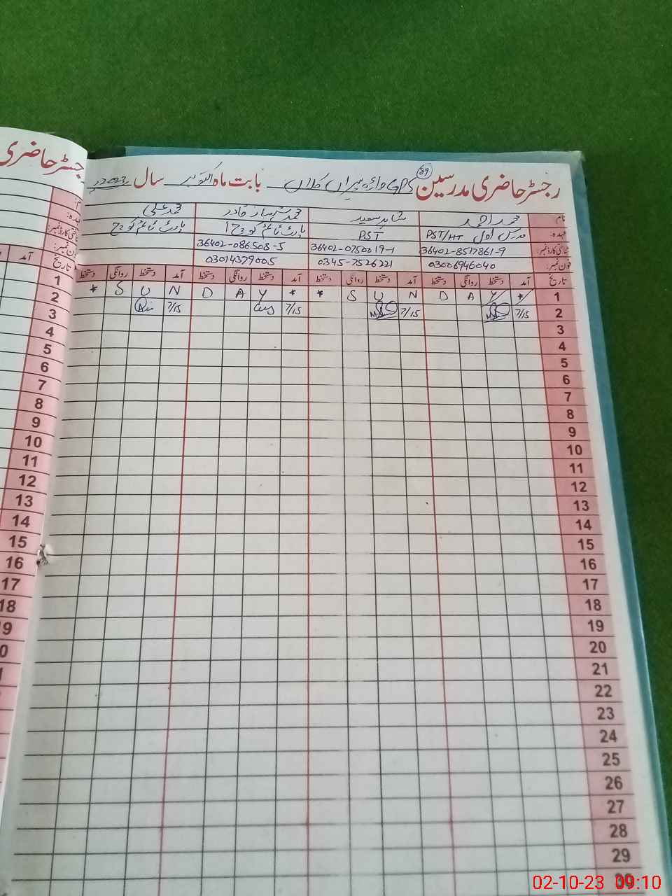 | Name: MU**** AH**** Designation: (School Headmaster's/Headmistress's) PST Phone/Cell Number: 03**** |