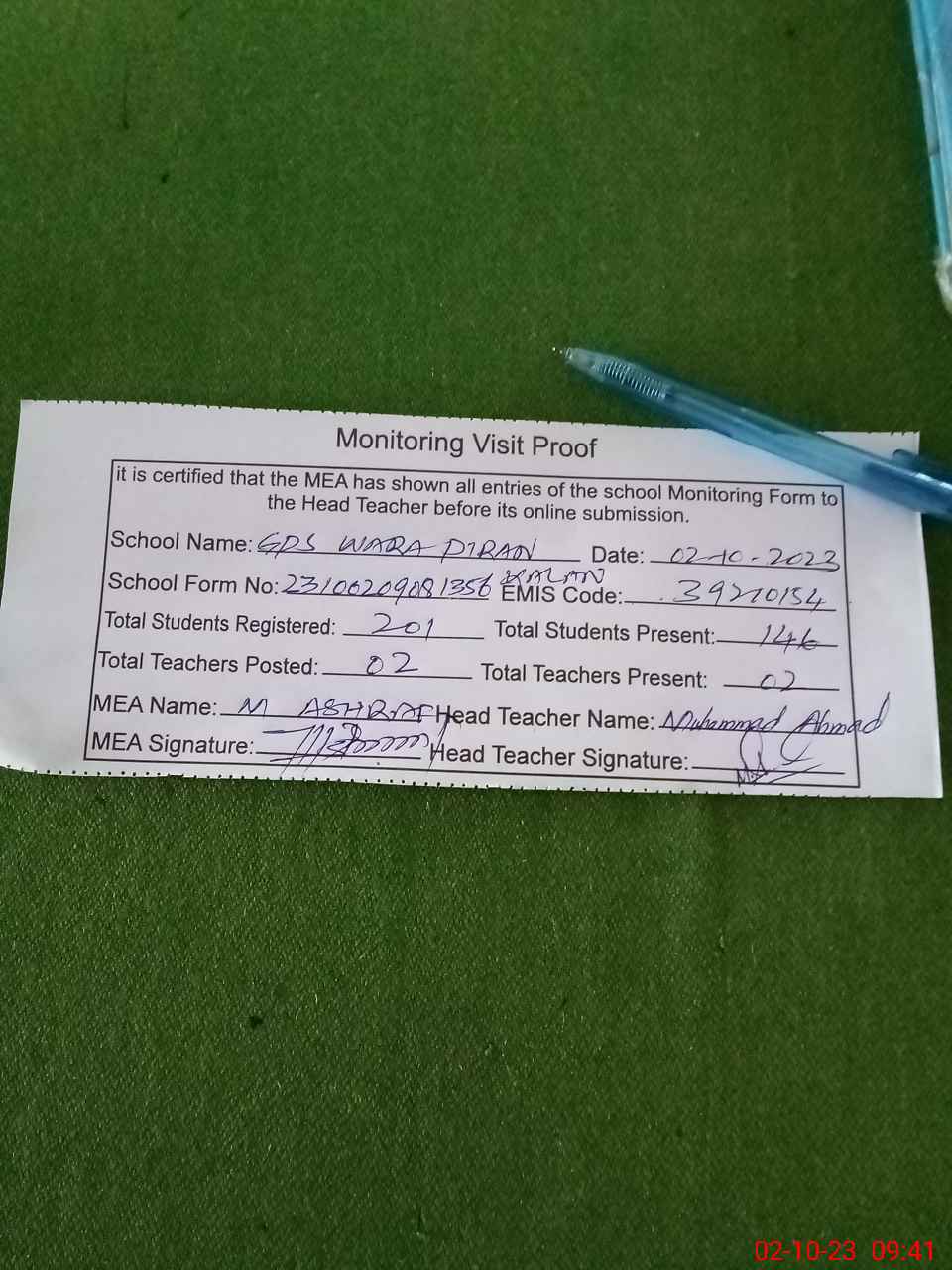 | EMIS Code: 39210154 | Name of School: GPS WARRA PIRAN KALAN | |||