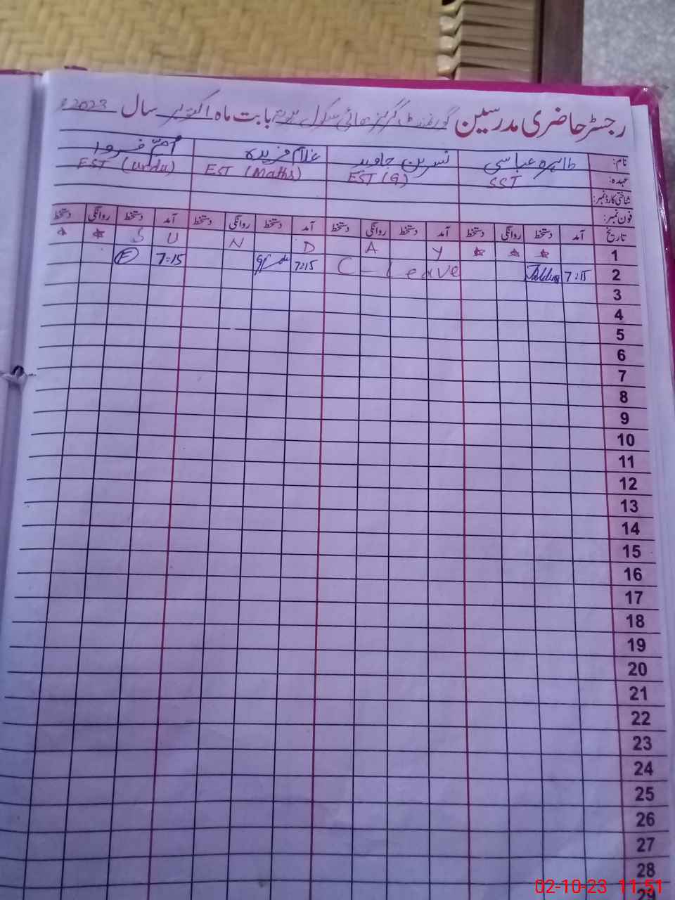 | Name: Ab**** Sh**** Designation: (School Headmaster's/Headmistress's) PST Phone/Cell Number: 03**** |