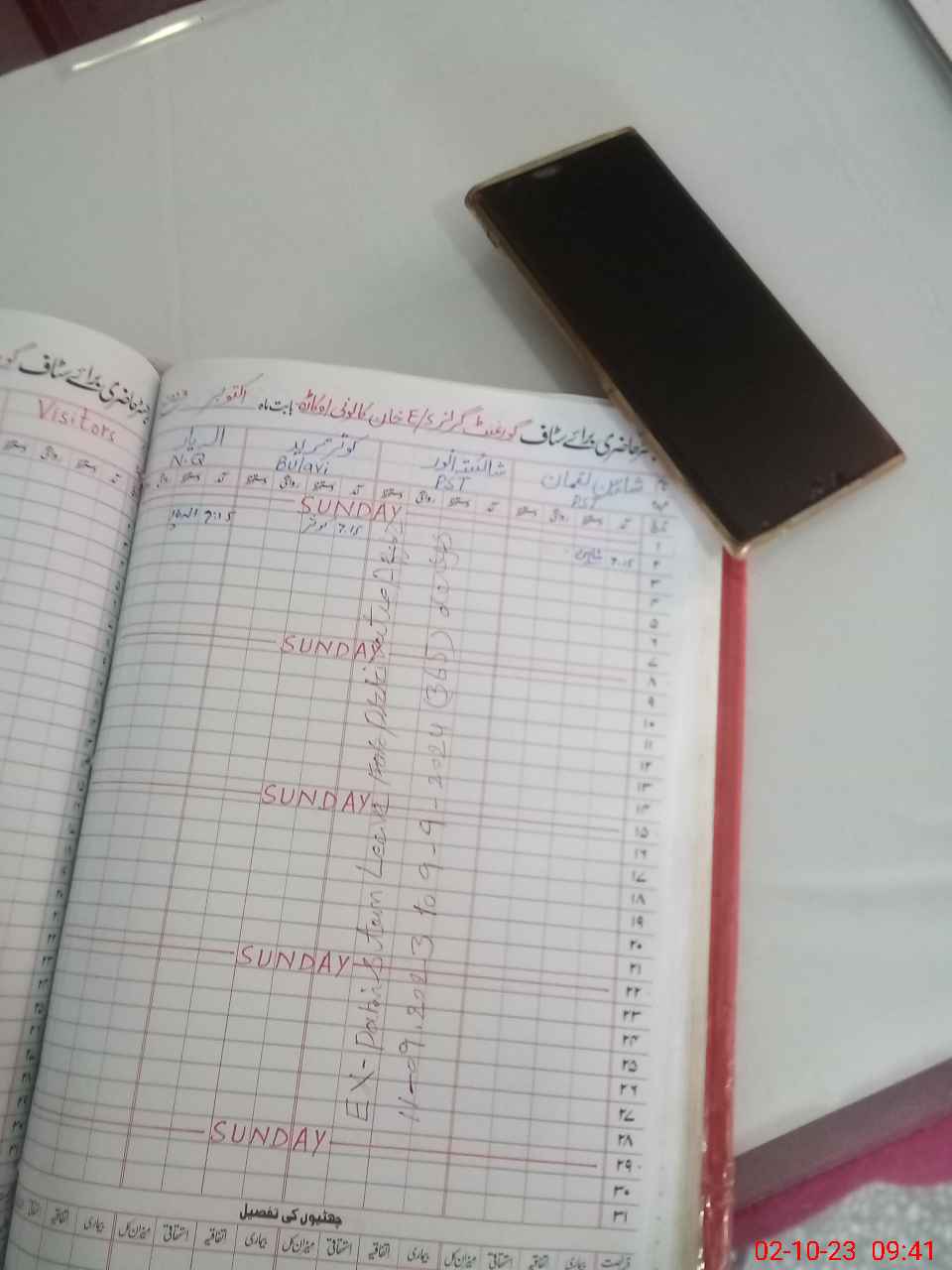 | CNIC | Full Name | Designation | R/C | Absence During Last Calender Month |