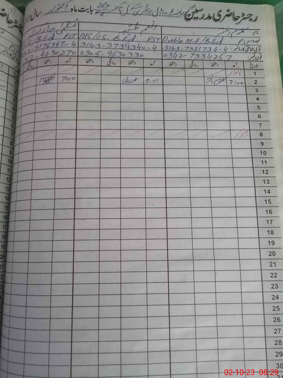| Name: Ka**** Ak**** Designation: (School Headmaster's/Headmistress's) PST Phone/Cell Number: 03**** |
