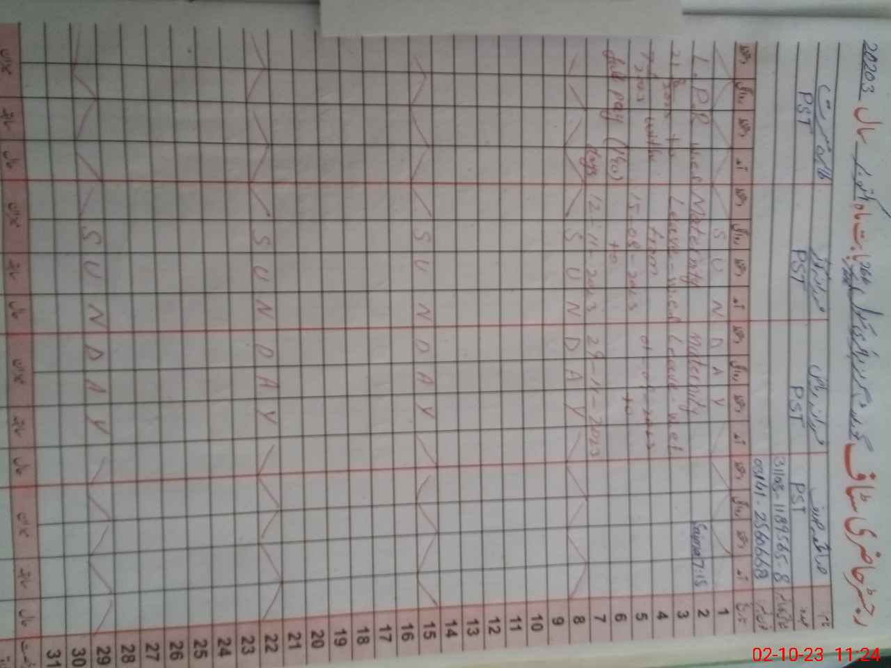 | 31**** | Fa**** Ko**** | 1 | 30 | 0 | 0 | 30 | 0 | 0 | 0 | 0 | 0 | Maternity | |