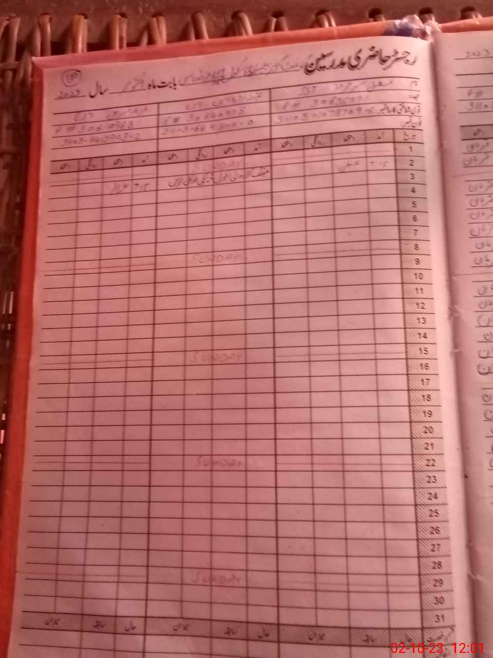 | CNIC | Full Name | Designation | R/C | Absence During Last Calender Month |