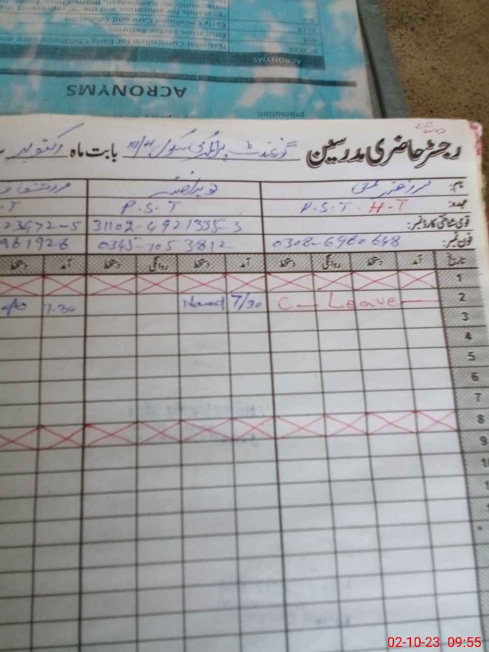 | Remarks (Use Separate Page if Required): A unauthorised young girl named Sumera was found teaching to kachi class without any school record or permission from Education Authority | |||||