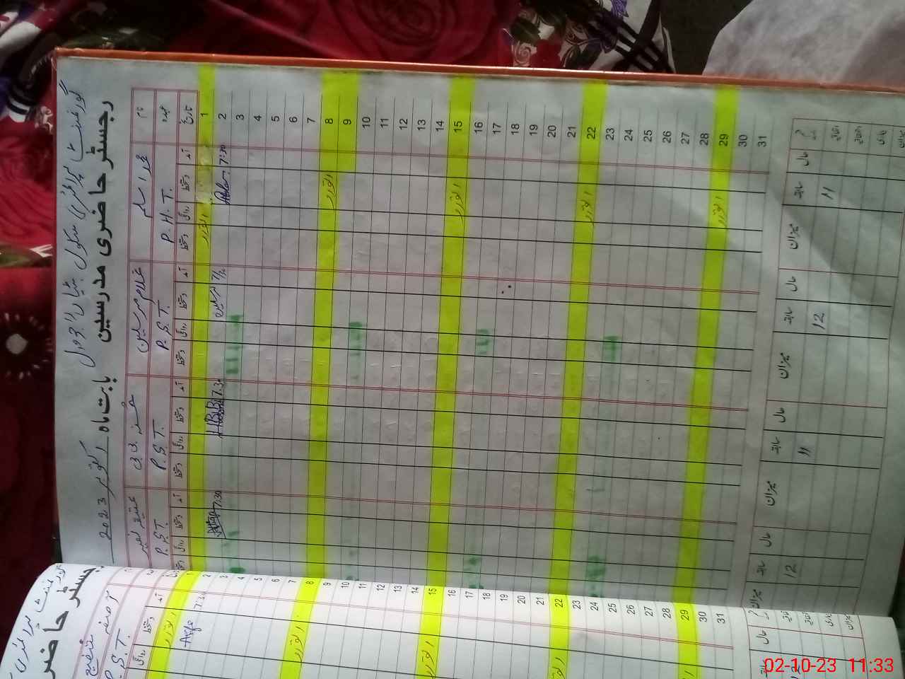 | CNIC | Full Name | Designation | R/C | Absence During Last Calender Month |