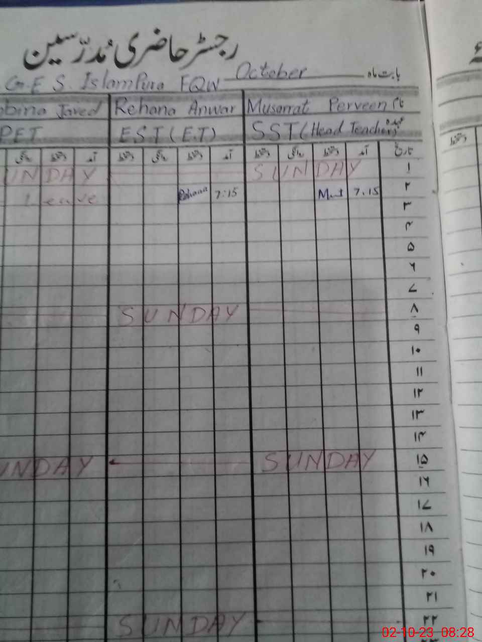 | Name: MU**** PE**** Designation: (School Headmaster's/Headmistress's) S.S.T.(G) Phone/Cell Number: 03**** |