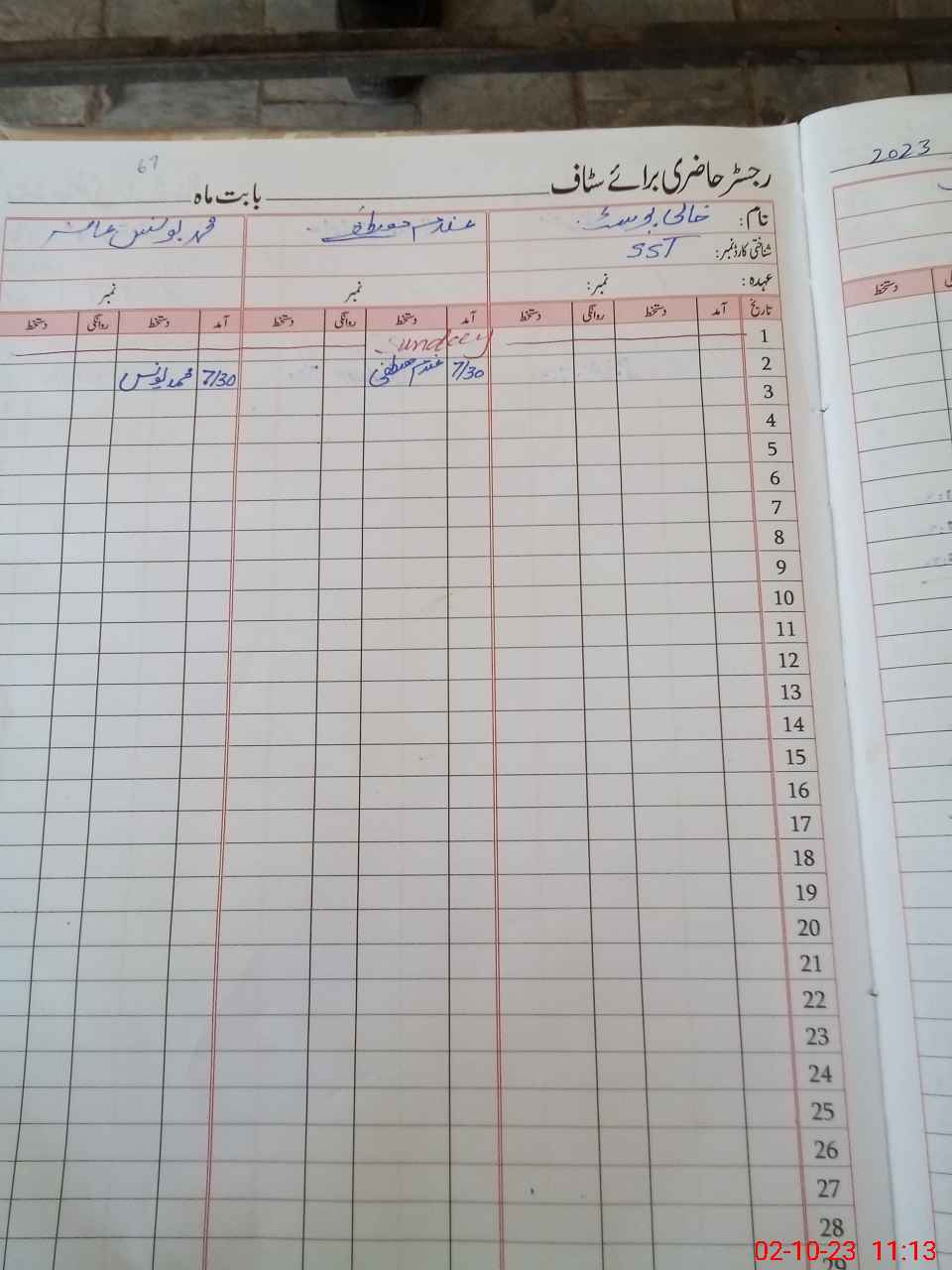 | Name: Kh**** Me**** Designation: (School Headmaster's/Headmistress's) SST Phone/Cell Number: 03**** |