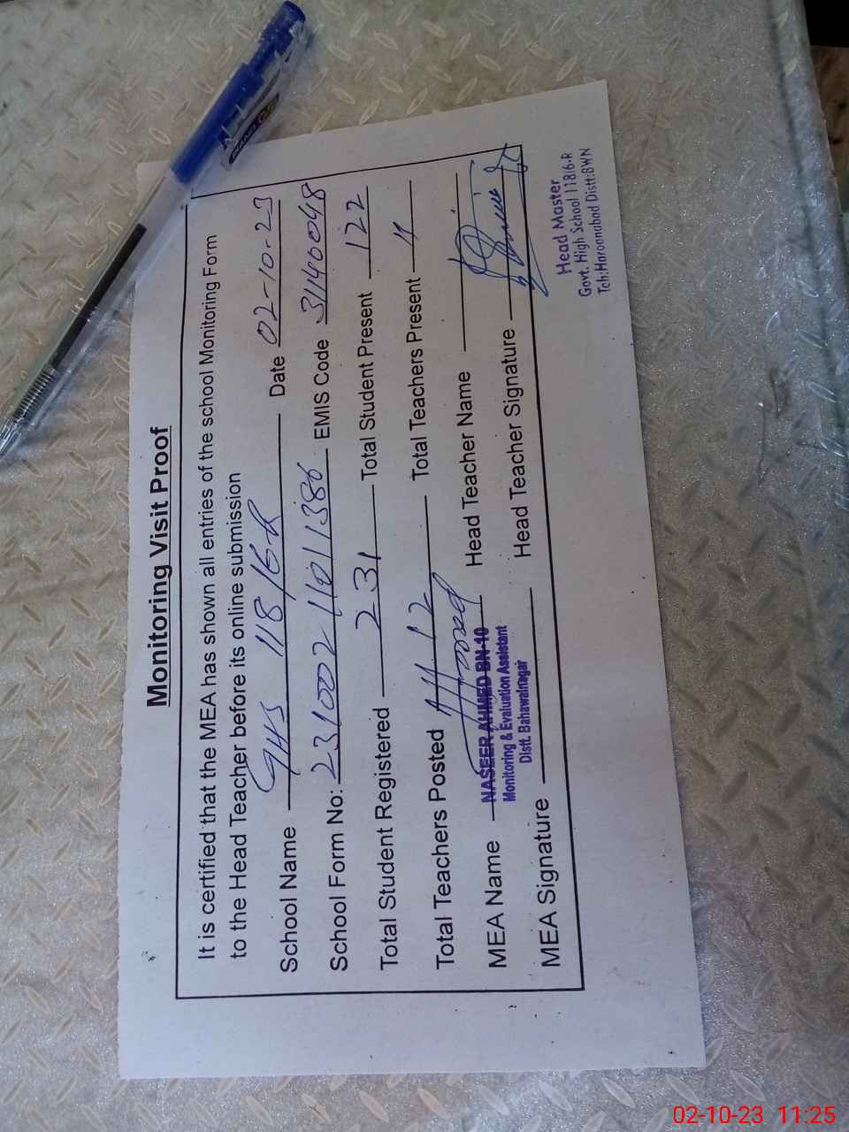 | Certified that this School was Inspected by the Undersigned MEA/DMO Today and the Information Stated Above is as Per Record. | |||||