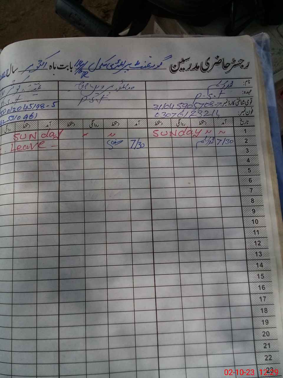 | Name: Sa**** Pe**** Designation: (School Headmaster's/Headmistress's) PST Phone/Cell Number: 03**** |