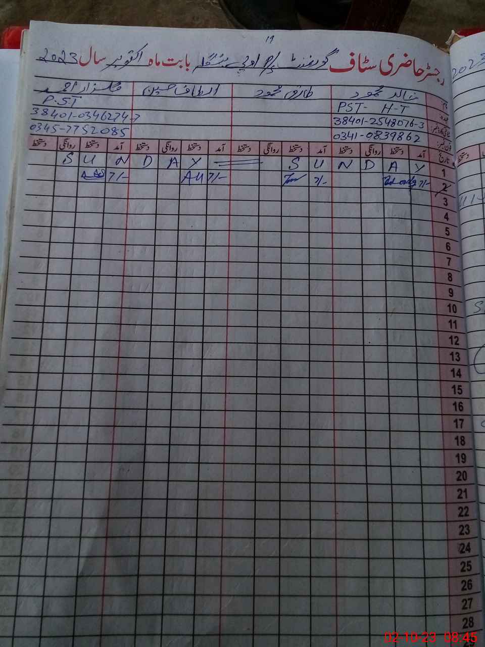 | Name: Ir**** Hu**** Designation: (School Headmaster's/Headmistress's) PST Phone/Cell Number: 03**** |