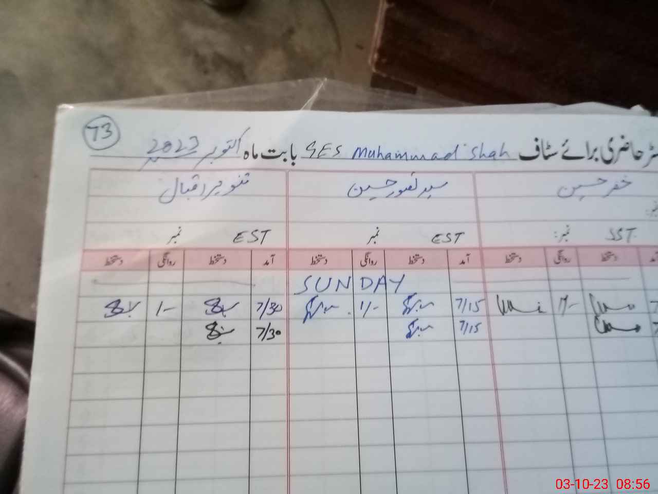 | Name: Ta**** sh**** Designation: (School Headmaster's/Headmistress's) ES.T.(Science) Phone/Cell Number: 03**** |