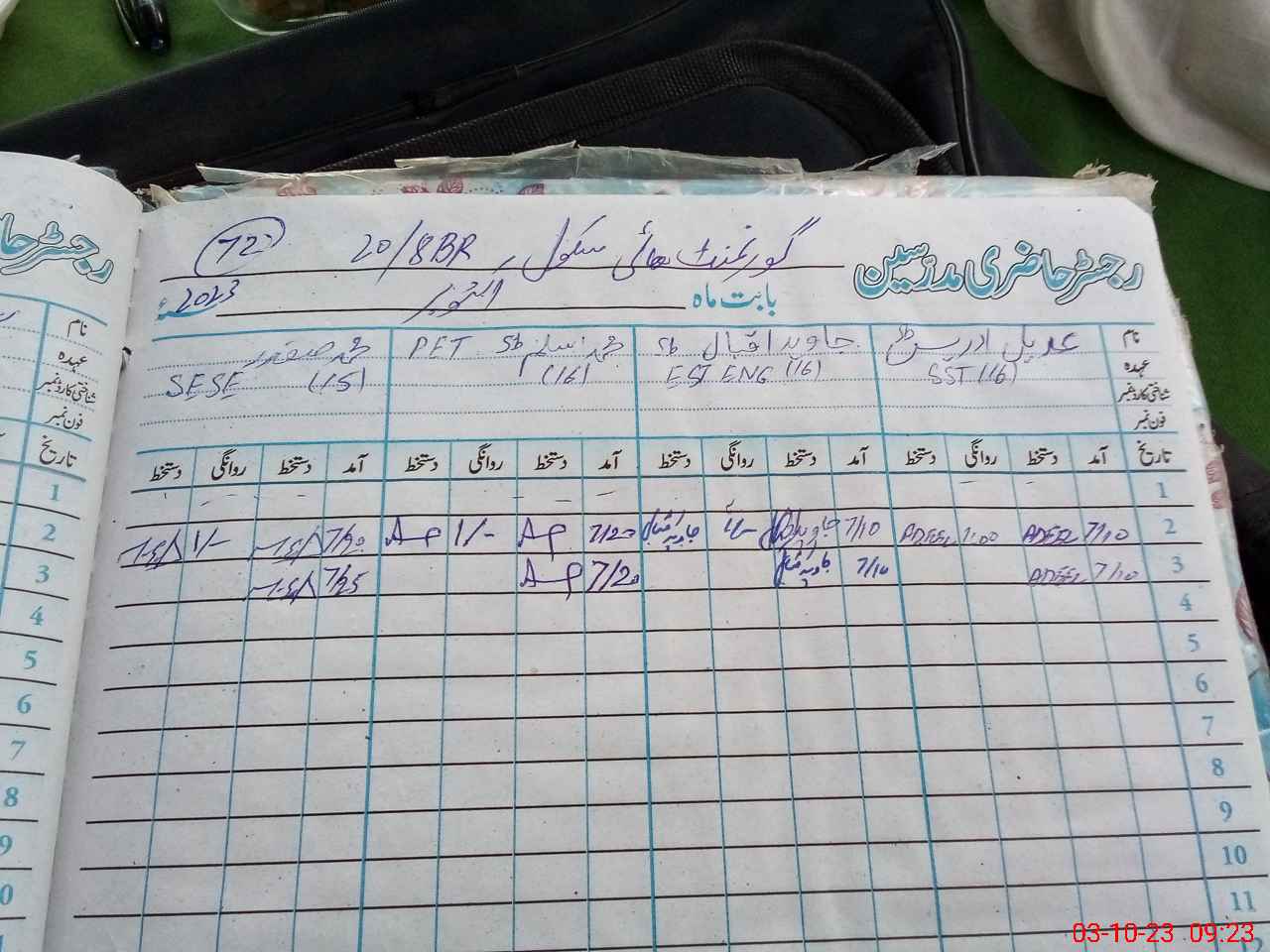 | CNIC | Full Name | Designation | R/C | Absence During Last Calender Month |