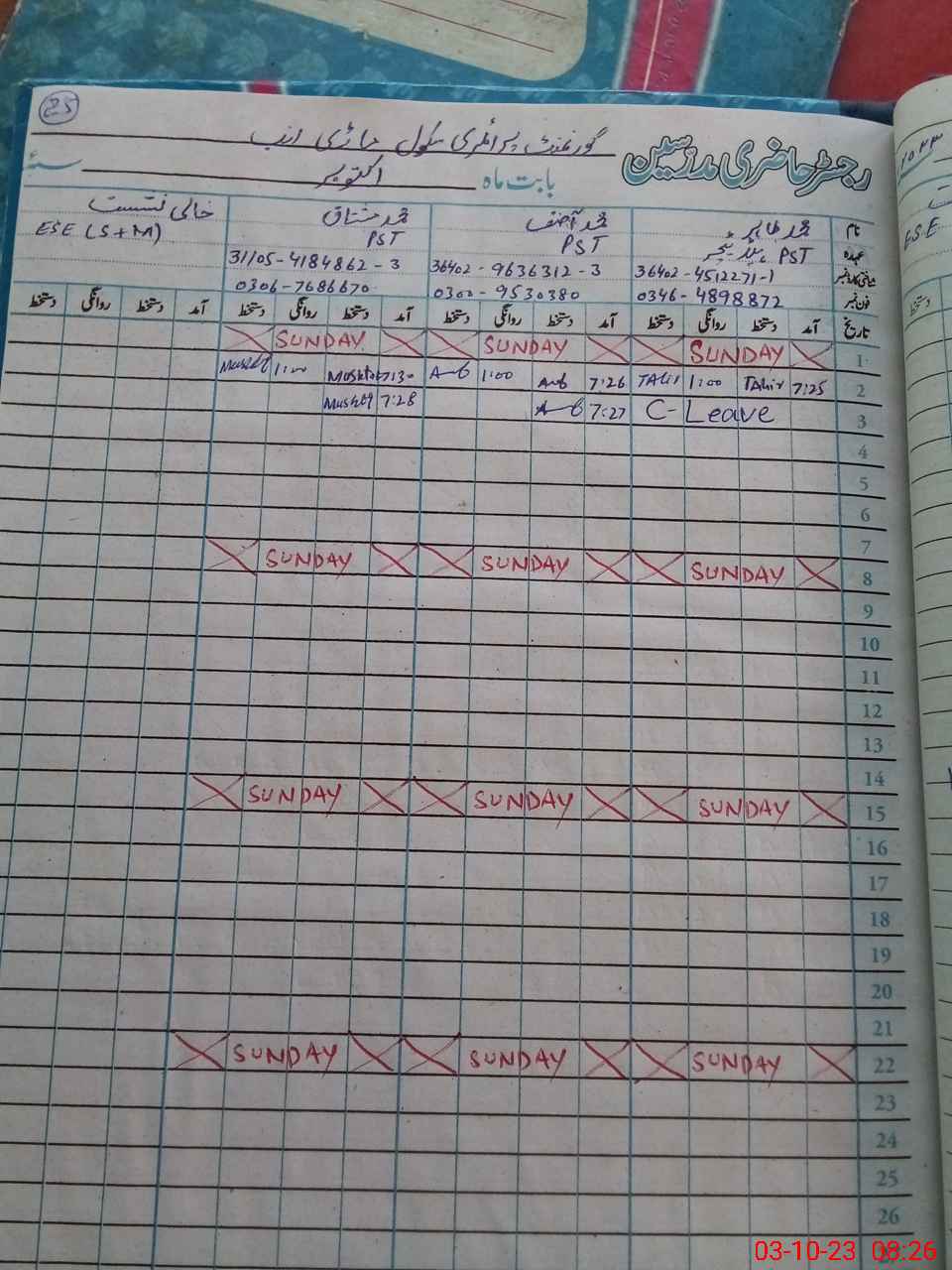 | Name: MU**** Mu**** Designation: (School Headmaster's/Headmistress's) PST Phone/Cell Number: 03**** |