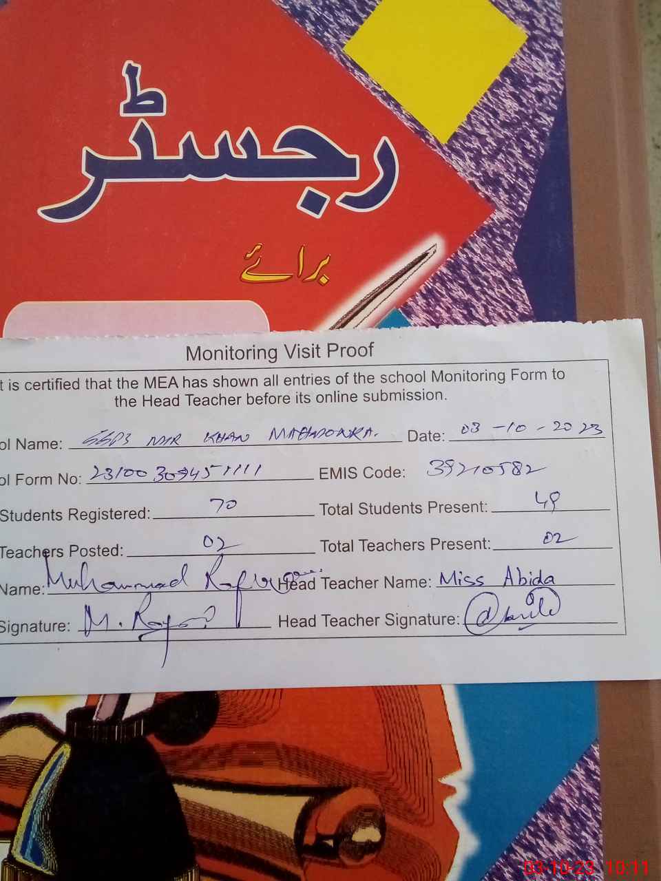| EMIS Code: 39210582 | Name of School: GGPS MIR KHAN MAHMOONKA | |||