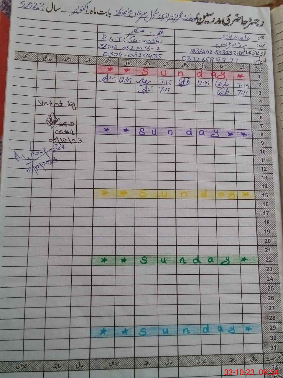 | Name: Ab**** Mu**** Designation: (School Headmaster's/Headmistress's) PST Phone/Cell Number: 03**** |