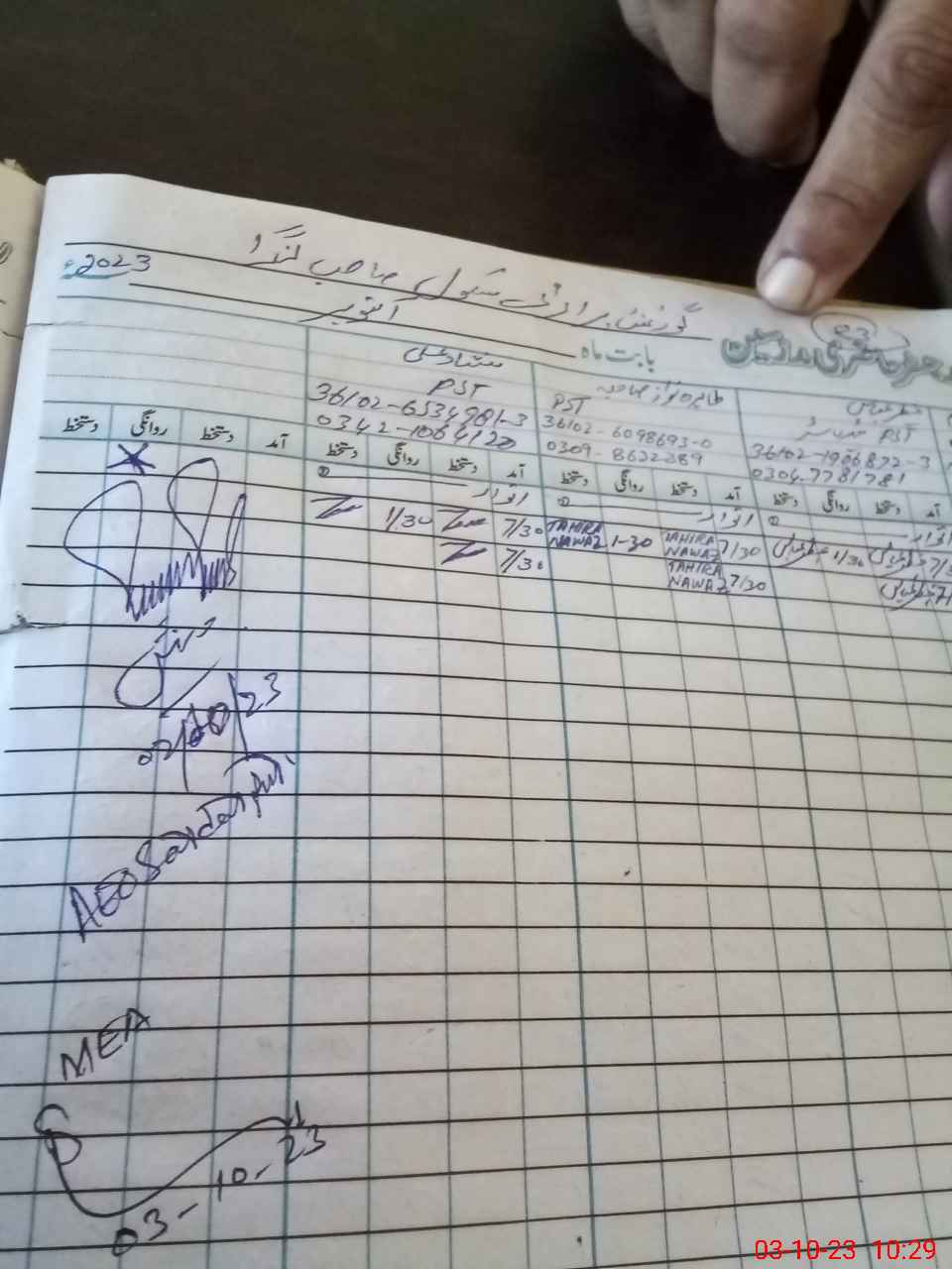 | Name: MA**** AB**** Designation: (School Headmaster's/Headmistress's) PST/PTC/JV Phone/Cell Number: 03**** |