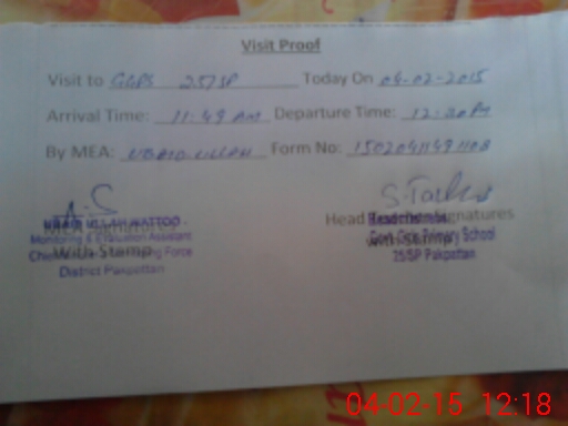 | District: PAKPATTAN | Tehsil: PAKPATTAN | Markaz: CHAKBEDI 4 - FEMALE | Level: Primary | |