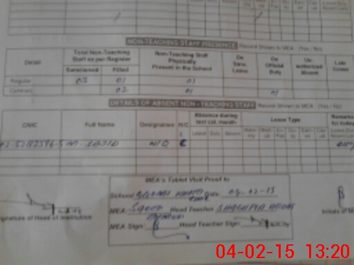 | Attendance Register | Head Teacher | MEA with School | Visit Proof |