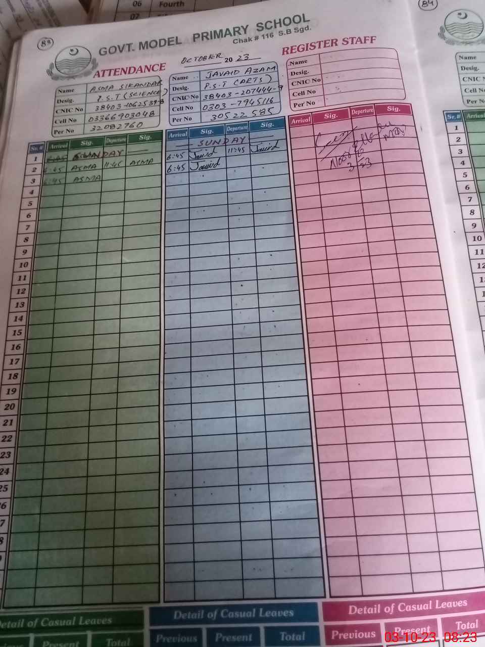 | Name: Ja**** Az**** Designation: (School Headmaster's/Headmistress's) PST (SCI ) Phone/Cell Number: 03**** |