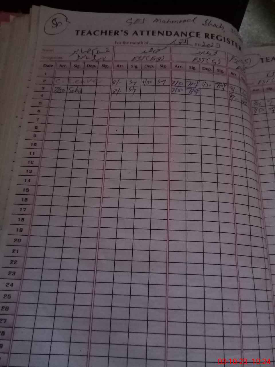| 33**** | Ha**** Ra**** | 3 | 1 | 0 | 0 | 0 | 0 | 0 | 0 | 0 | 0 | 0 | Absent (Un-Authorized) |