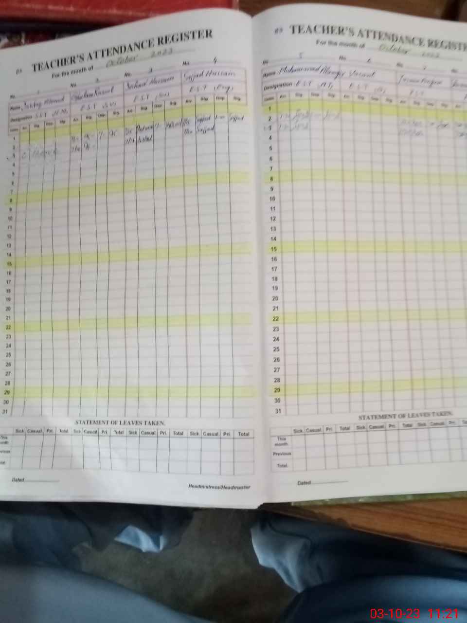 | Name: SH**** SA**** Designation: (School Headmaster's/Headmistress's) SST( Comp) Phone/Cell Number: 03**** |