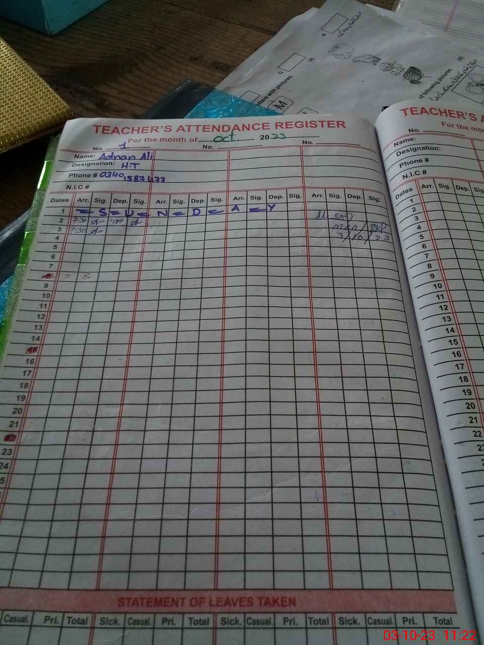 | Name: AR**** AL**** Designation: (School Headmaster's/Headmistress's) ESE Phone/Cell Number: 03**** |