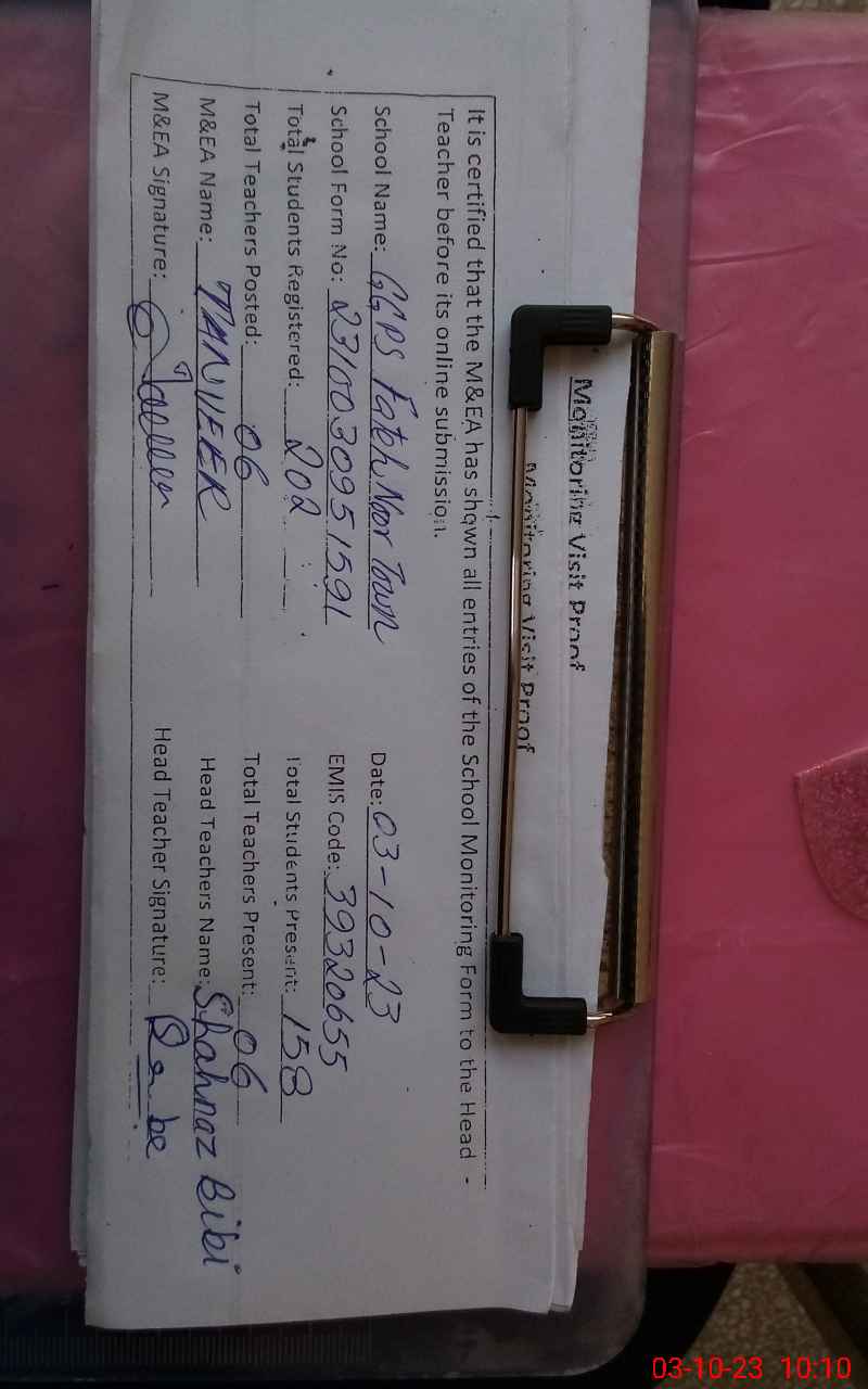 | EMIS Code: 39320655 | Name of School: GGPS FATEH NOOR TOWN | |||