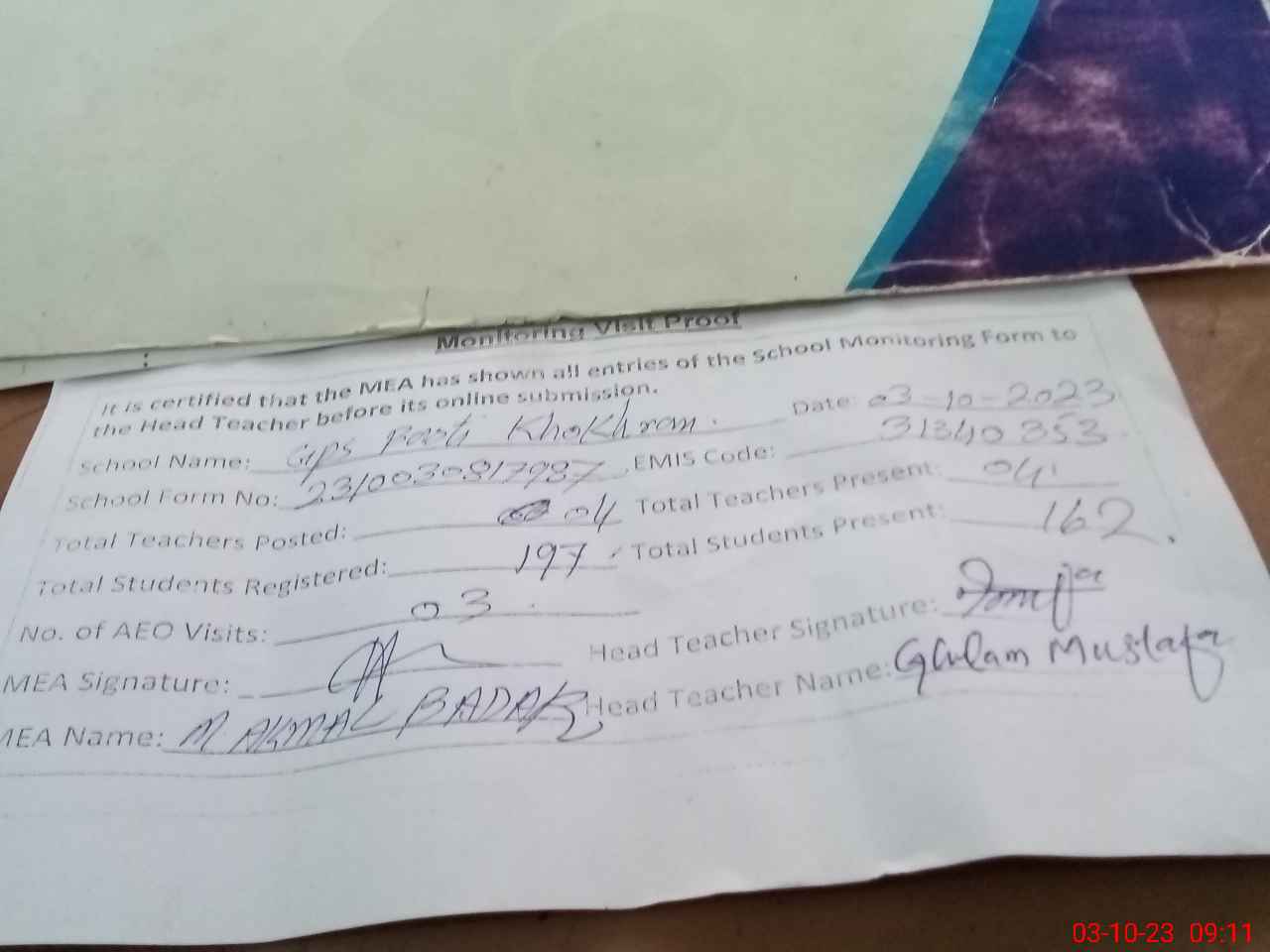 | EMIS Code: 31340353 | Name of School: GPS BASTI KHOKHRAN | |||