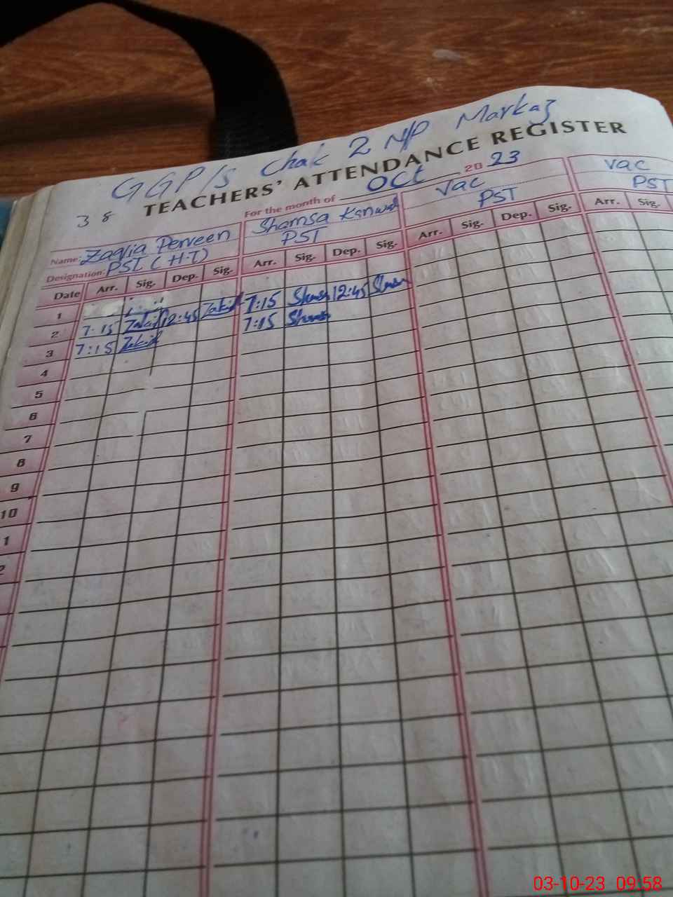 | Name: Za**** Pa**** Designation: (School Headmaster's/Headmistress's) PST Phone/Cell Number: 03**** |