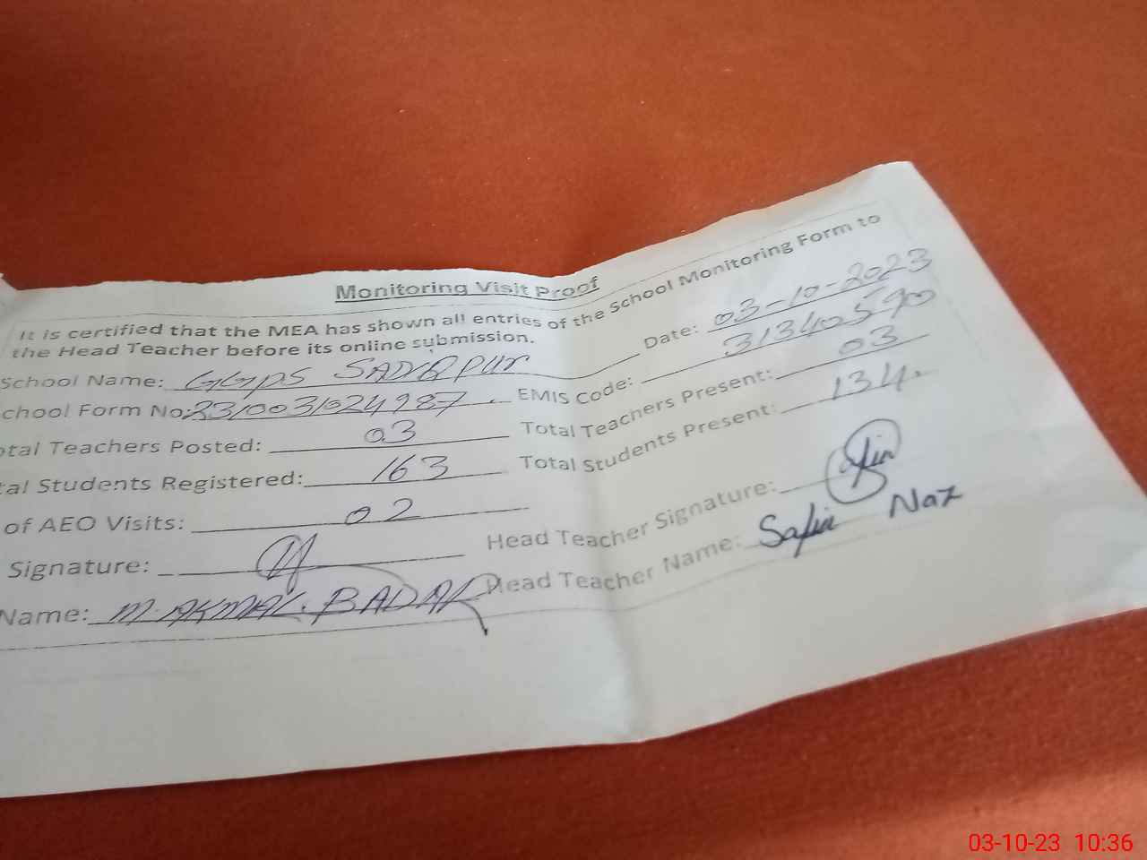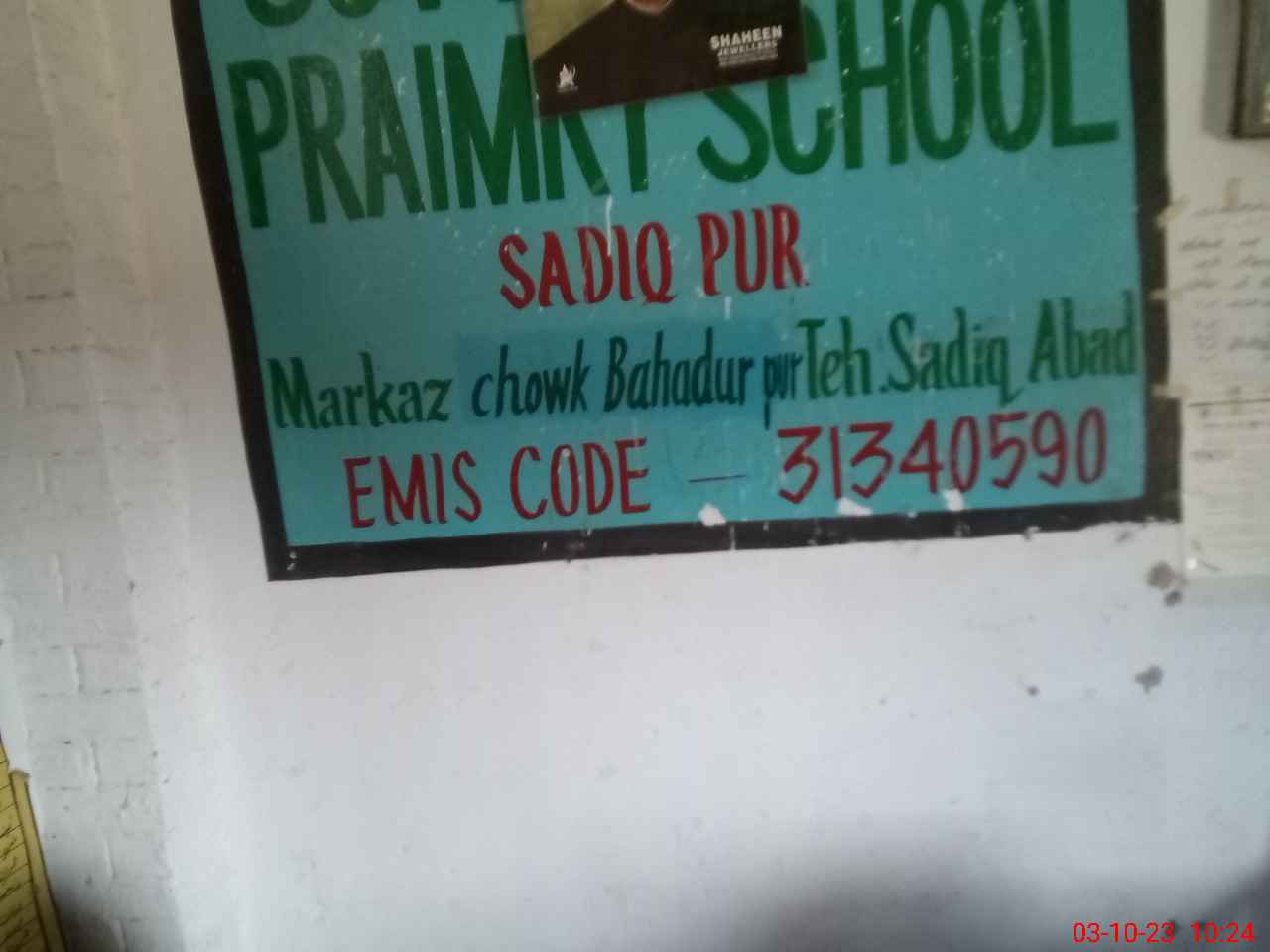 | EMIS Code: 31340590 | Name of School: GGPS SADIQ PUR | |||