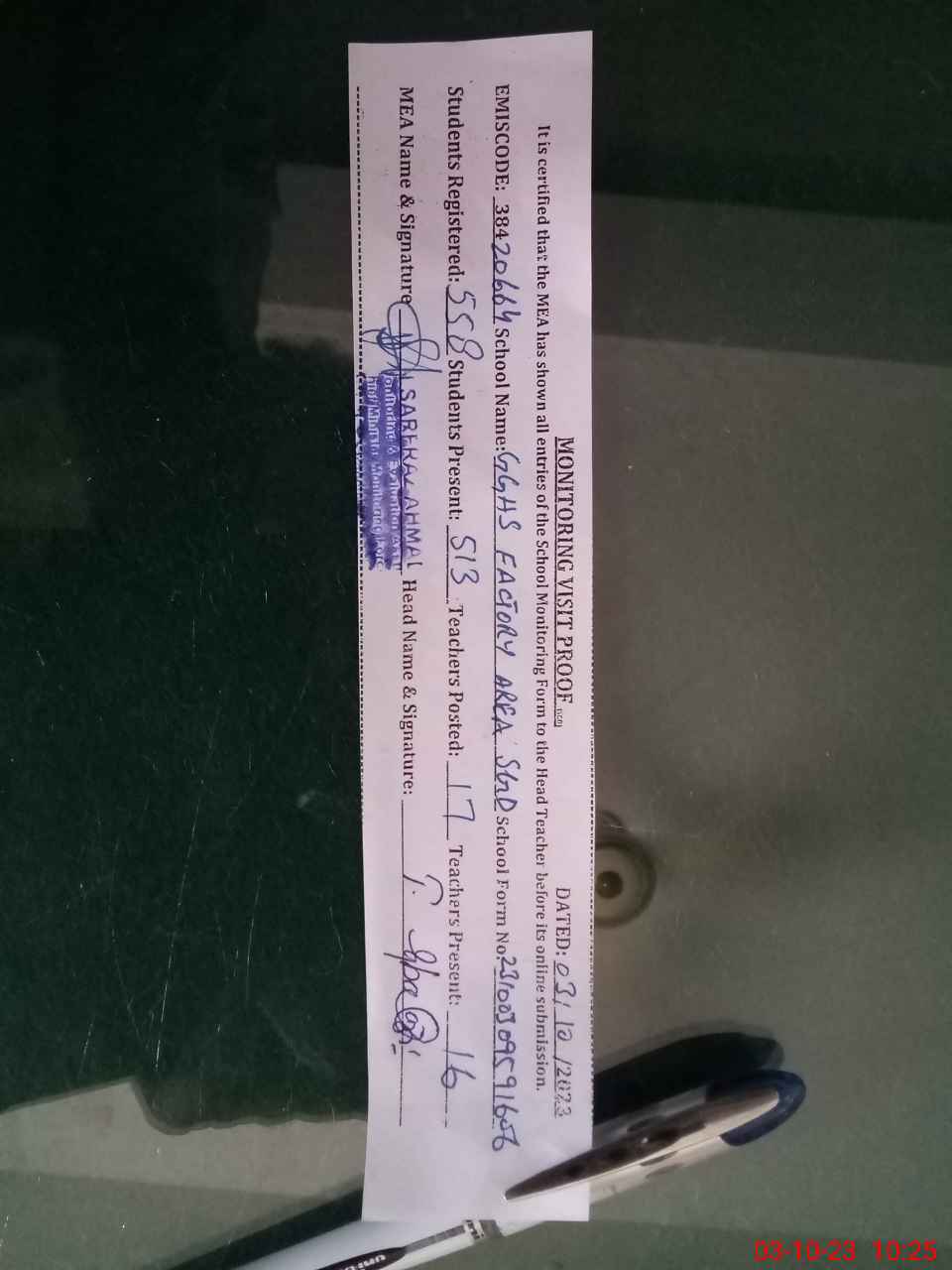 | EMIS Code: 38420664 | Name of School: GGHS FACTORY AREA SARGODHA | |||