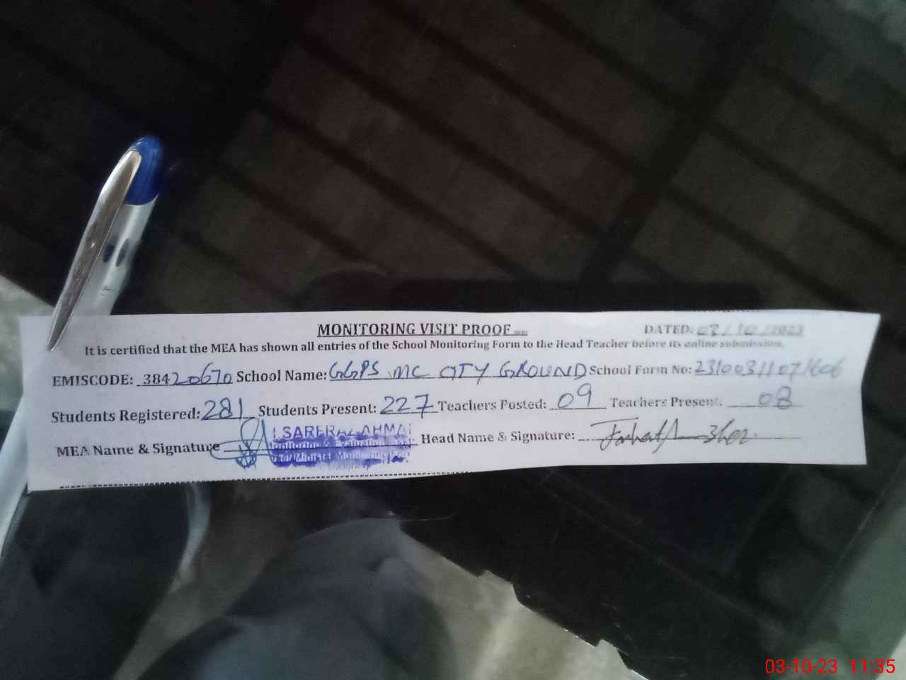 | EMIS Code: 38420670 | Name of School: GGPS MC CITY GROUND SARGODHA | |||