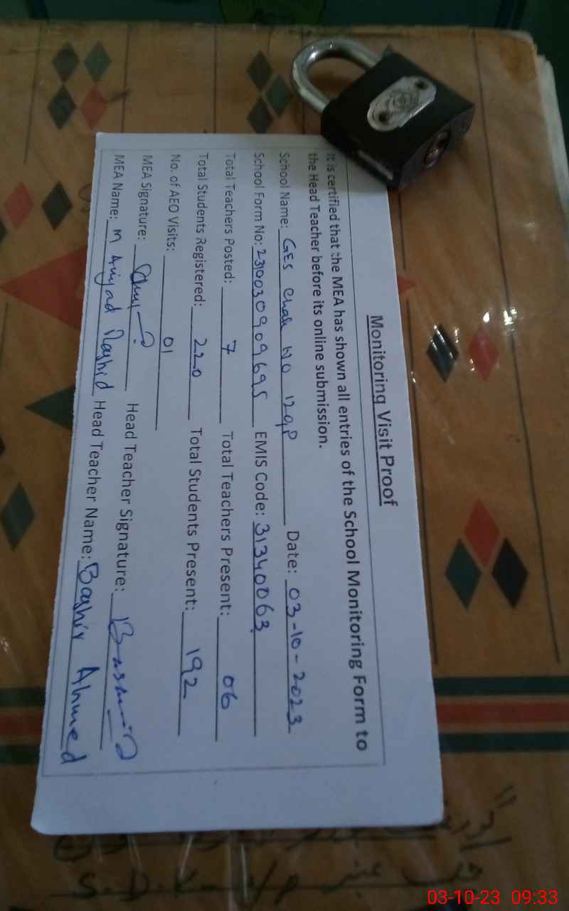 | EMIS Code: 31340063 | Name of School: GES CHAK 120/P | |||