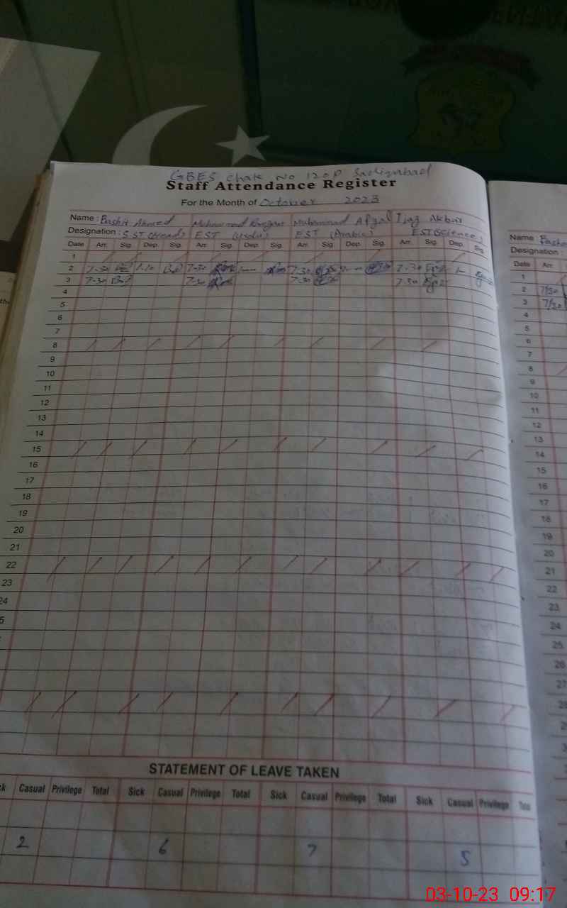 | Name: MRa**** Designation: (School Headmaster's/Headmistress's) EST Phone/Cell Number: 03**** |