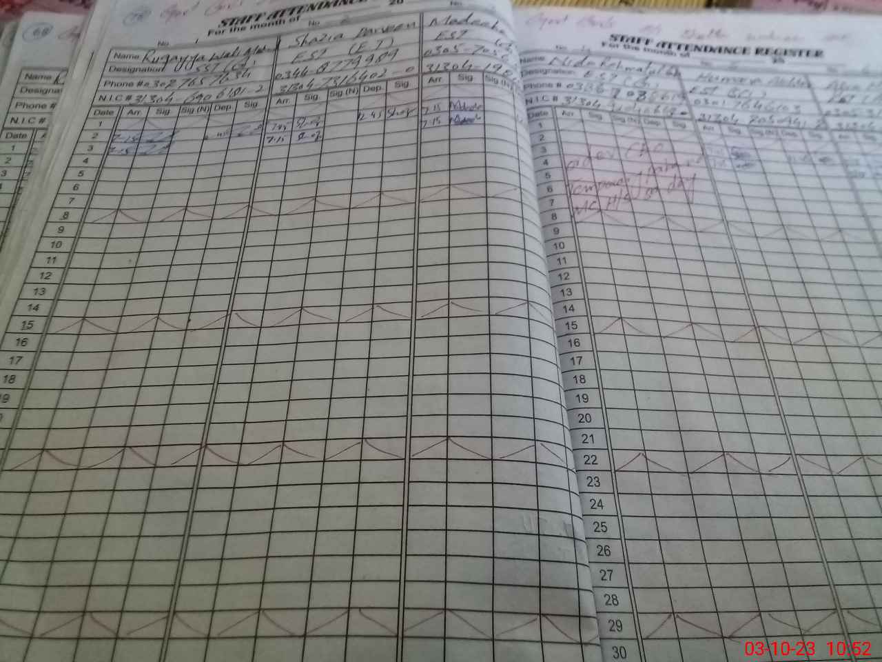 | CNIC | Full Name | Designation | R/C | Absence During Last Calender Month |