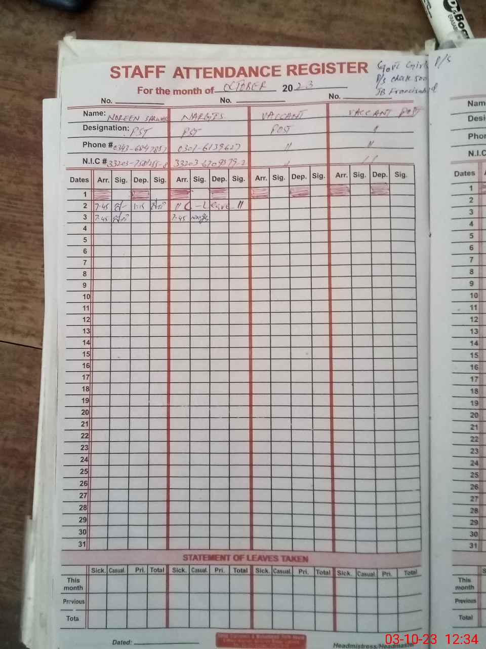 | Name: NO**** SA**** Designation: (School Headmaster's/Headmistress's) PST Phone/Cell Number: 03**** |