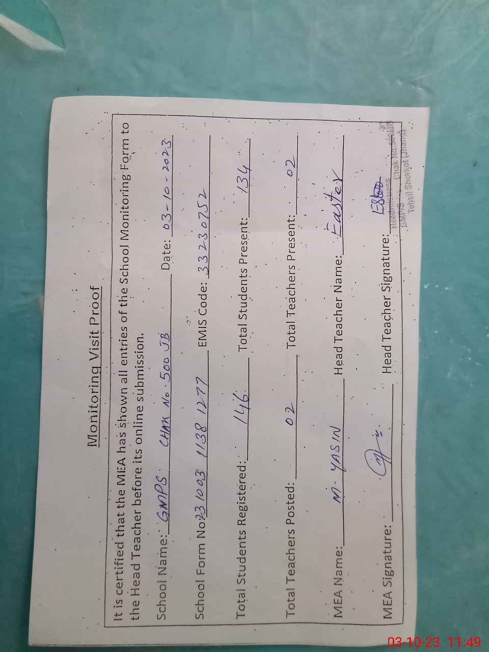 | EMIS Code: 33230752 | Name of School: GMPS CHAK NO. 500 JB | |||