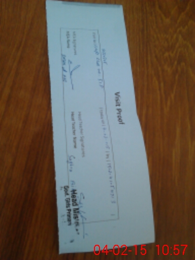 | Attendance Register | Head Teacher | MEA with School | Visit Proof |