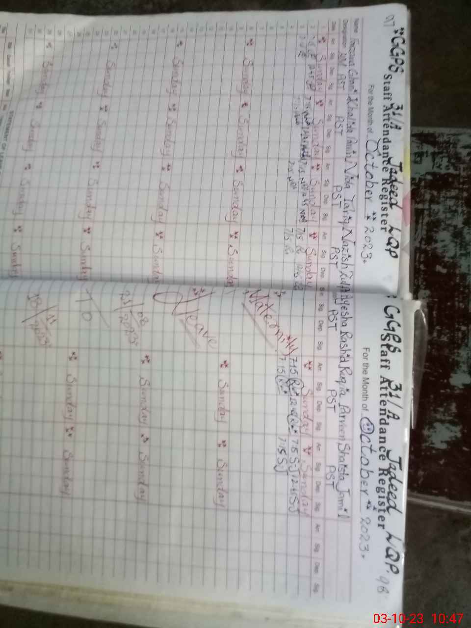 | Leave | Duty | Absent | Maternity | Medical | Ex- Pak |